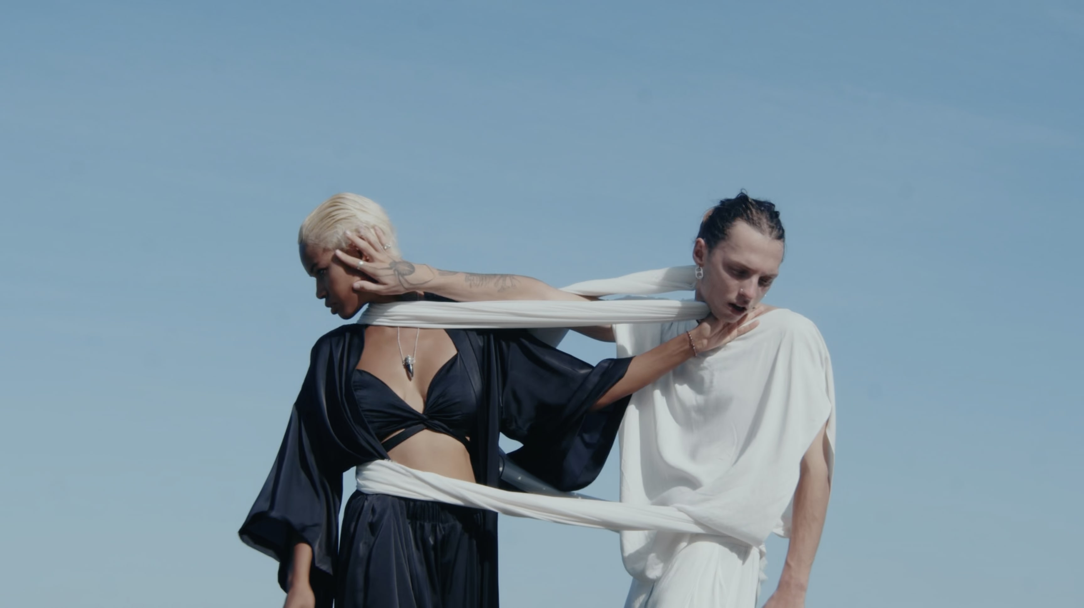 Our goal was to craft a video that visually mirrors the emotional depth of the song. The narrative unfolds as Ariadna and her partner engage in a captivating dance, pulling a flowing fabric that symbolizes tension and unity. The story transitions from the raw beauty of a canyon and a stunning ocean-view sunset to an underwater world, where their movements become weightless and dreamlike. These elements are intercut with powerful shots of Ariadna performing, enhancing the emotional resonance of the visuals.